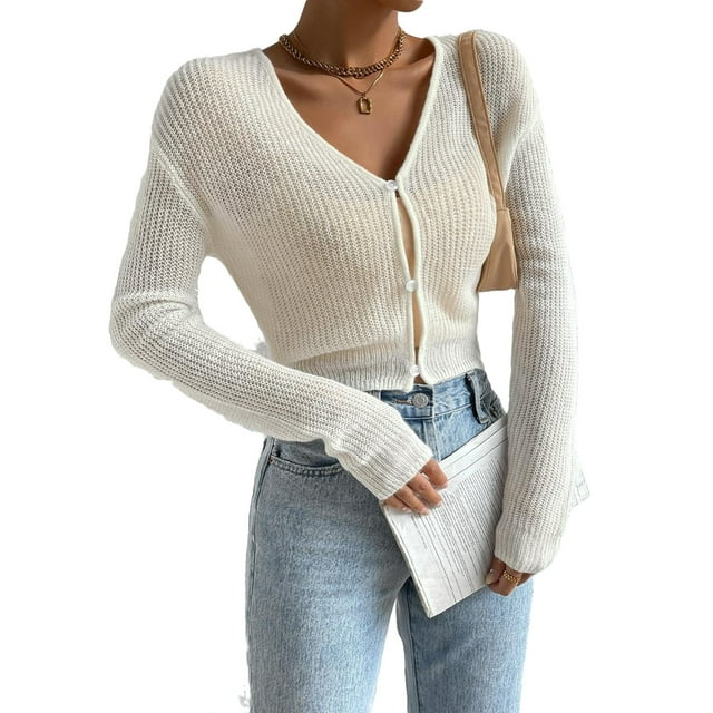First up, let’s talk about this ultra-versatile white cardigan. With its soft fabric and flattering V-neck design, it’s the perfect layering piece to elevate any ensemble. Whether I’m running errands or meeting friends for coffee, this cardigan adds a touch of effortless elegance to my outfit.