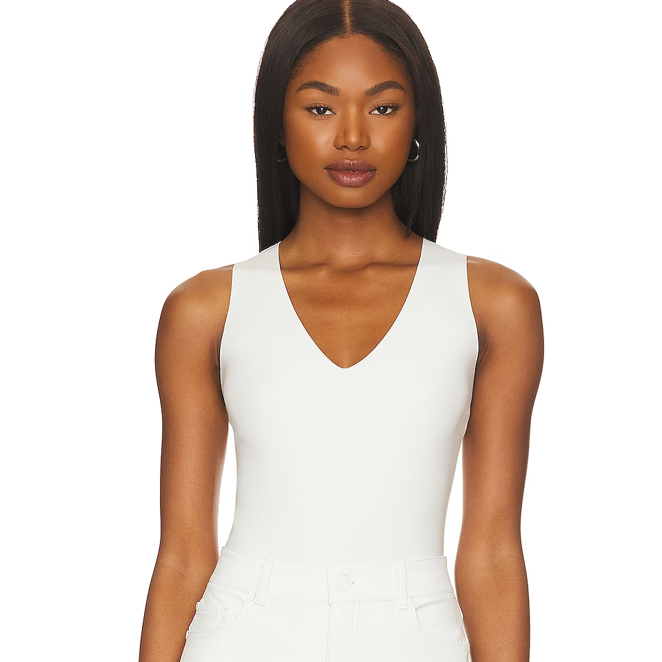 First up, let’s talk about the Commando Neoprene Deep V Bodysuit in crisp white. This bodysuit is an absolute game-changer, offering both comfort and style in one sleek package. The deep V-neck adds a hint of allure, while the neoprene fabric ensures a snug yet flexible fit that’s perfect for long flights or sightseeing tours.